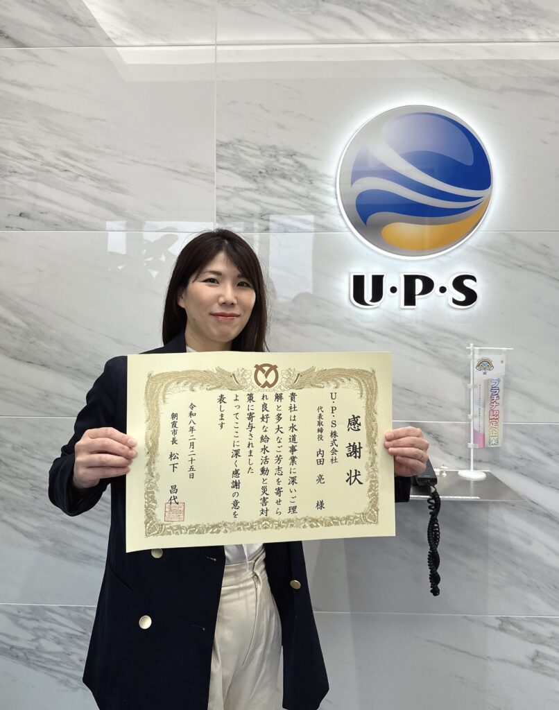 このたび、日頃よりお世話になっている 朝霞市 様へ 給水タンクを寄贈させていただきました。